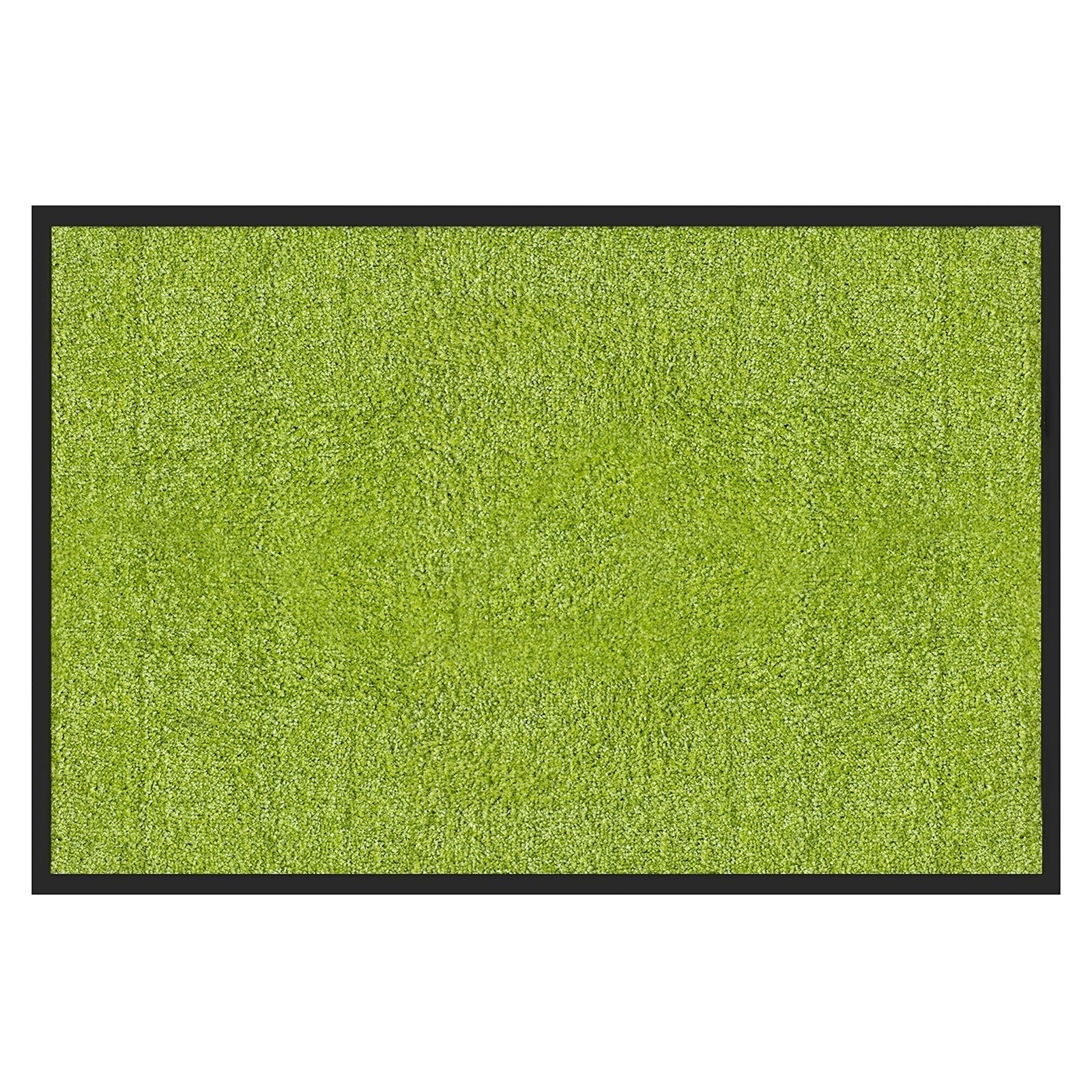 Die Fussmatte besitzt einen robusten, pflegeleichten Flor aus Polyamid, dessen hochwertige Fasern aufgrund ihrer bürstenartigen Funktionsweise hochwirksam arbeiten. Schmutz und Feuchtigkeit werden zuverlässig entfernt und zwischen den Fasern festgehalten. Demzufolge saugen sich die Fasern der Sauberlaufmatte nicht voll und die Reinigungswirkung bleibt lange erhalten. Die farbige Fussmatte besitzt eine rutschresistente Rückenbeschichtung aus Vinyl und bleibt daher sicher an ihrem Platz liegen.